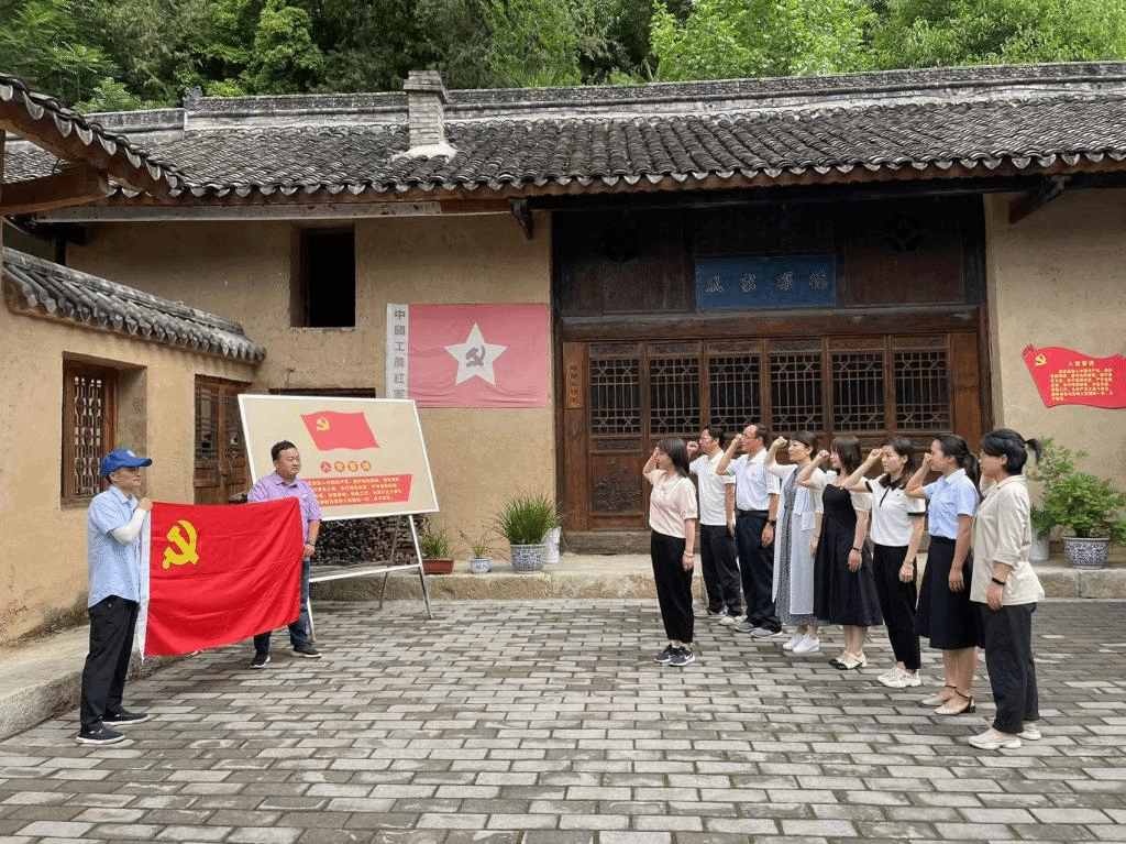 在红二十五军军部旧址,大家参观了军部纪念馆中的从北伐、东征、抗日战争、解放战争到抗美援朝的照片、实物,聆听了基地展示红色故事,了解了中国共产党建党至今的重大历史事件与伟大成就,感悟革命精神,勉励党员砥砺前行。一张张泛黄的照片、一件件先烈们留下的珍贵文稿、实物,让党员们切身体会了革命先烈们不屈不挠、不怕牺牲、勇往直前的革命精神。随后,全体党员面向党旗庄严宣誓,重温入党誓词。