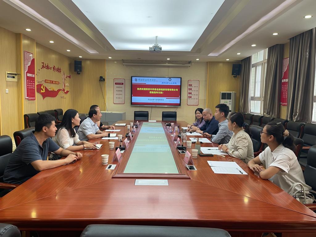9月16日,陕西中科善益康健康管理有限公司董事长李玉峰一行5人来药物与化工学院洽谈校企合作相关事宜,药物与化工学院院长周博、实训科科长、药品管理教研室主任及教研室相关教师等参加座谈。