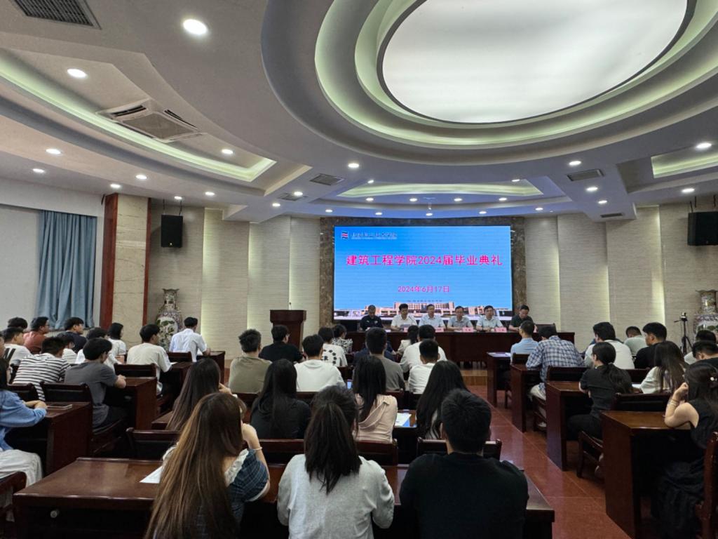 6月17日上午,建筑工程学院2024届毕业典礼在南校区水韵楼报告厅举行。副校长张朝晖出席毕业典礼。