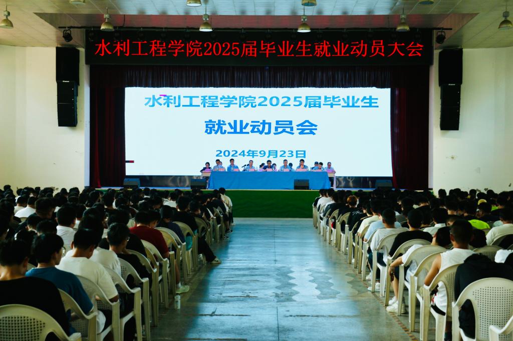 9月23日,水利工程学院召开2025届毕业生就业动员大会。副校长蒋平江出席会议并讲话。水利工程学院负责人、专业带头人、教研室主任、辅导员、毕业班班主任及2025届全体毕业生参加会议。