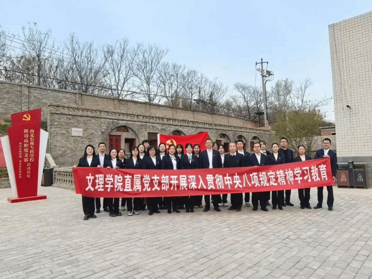 近日,文理学院直属党支部组织全体党员赴西北农林专科学校附设高职党支部活动旧址开展深入贯彻中央八项规定精神学习教育主题党日活动。学院全体党员参加活动。