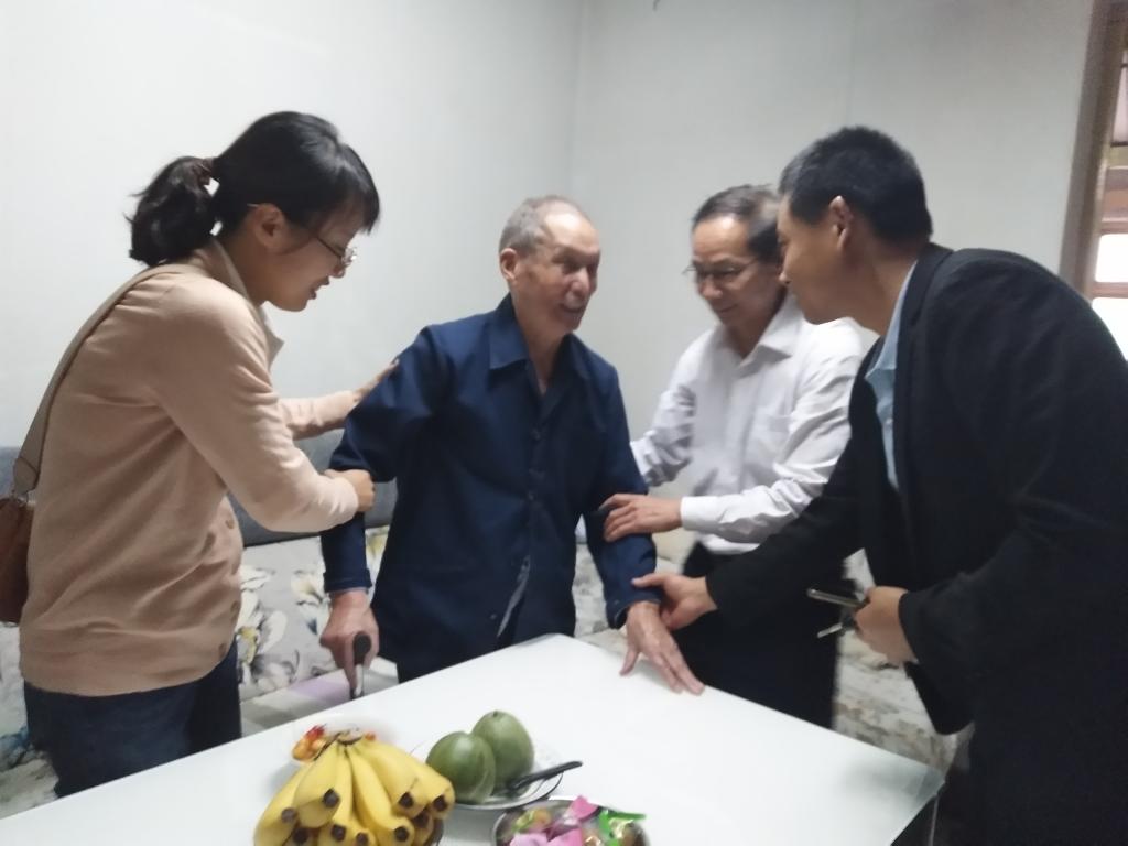 雍家义老人今年已97岁高龄,但他依然精神矍铄、身板硬朗,讲话风趣。他紧紧拉住志愿者们的手,对学院的关怀表示感谢,并祝愿学院各项事业蒸蒸日上。
