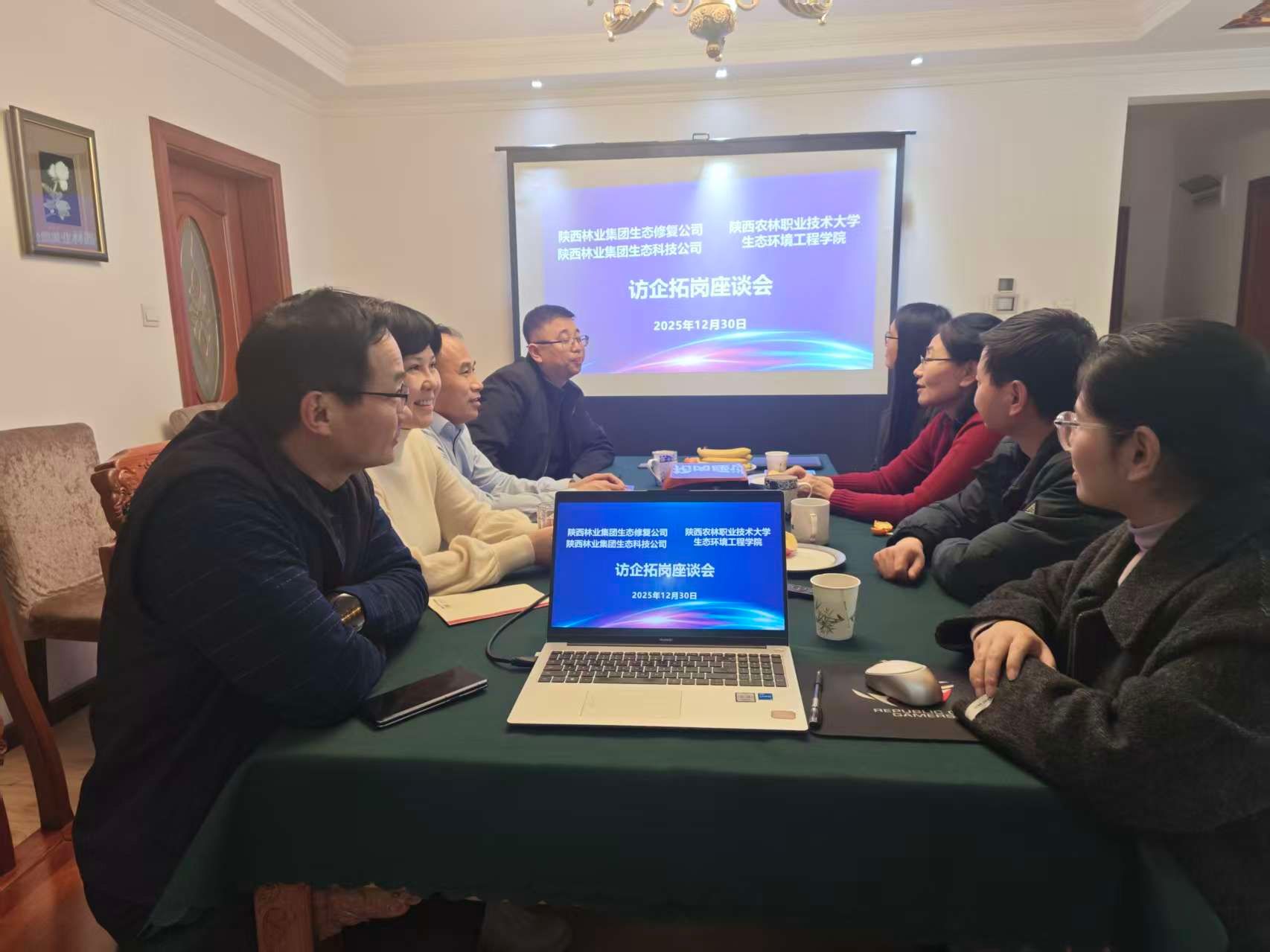 12月30日,生态环境工程学院负责人带队赴陕西林业集团土木林森发展有限责任公司、陕西林业生态修复有限公司、中国林业与环境建设促进会数字林业分会等企业和行业协会开展合作交流。