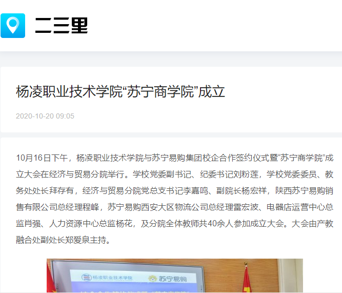【二三里】杨凌职业技术学院“苏宁商学院”成立