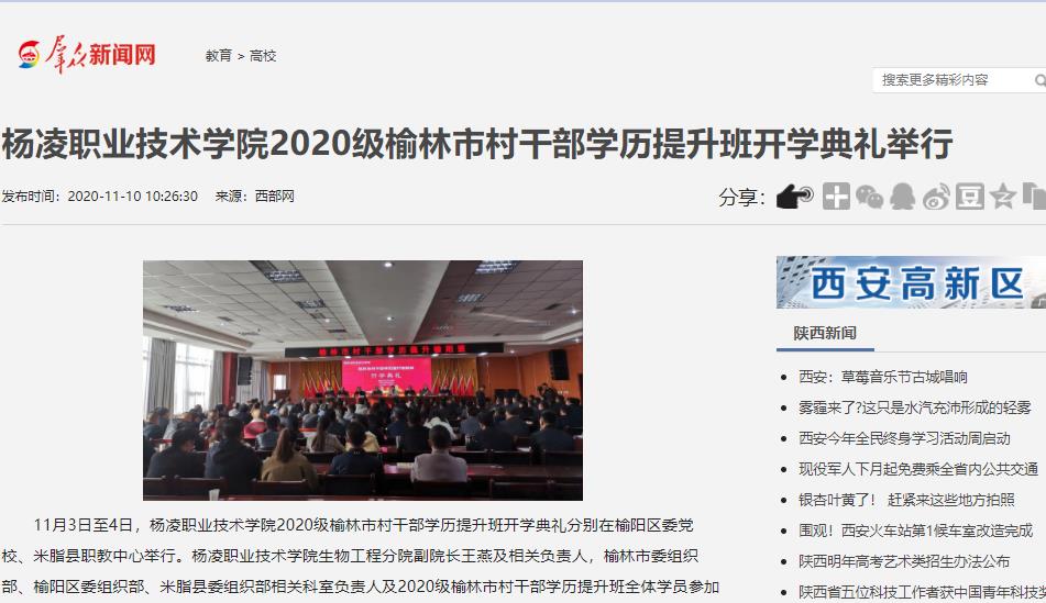 11月3日至4日,杨凌职业技术学院2020级榆林市村干部学历提升班开学典礼分别在榆阳区委党校、米脂县职教中心举行。杨凌职业技术学院生物工程分院副院长王燕及相关负责人,榆林市委组织部、榆阳区委组织部、米脂县委组织部相关科室负责人及2020级榆林市村干部学历提升班全体学员参加了开学典礼。