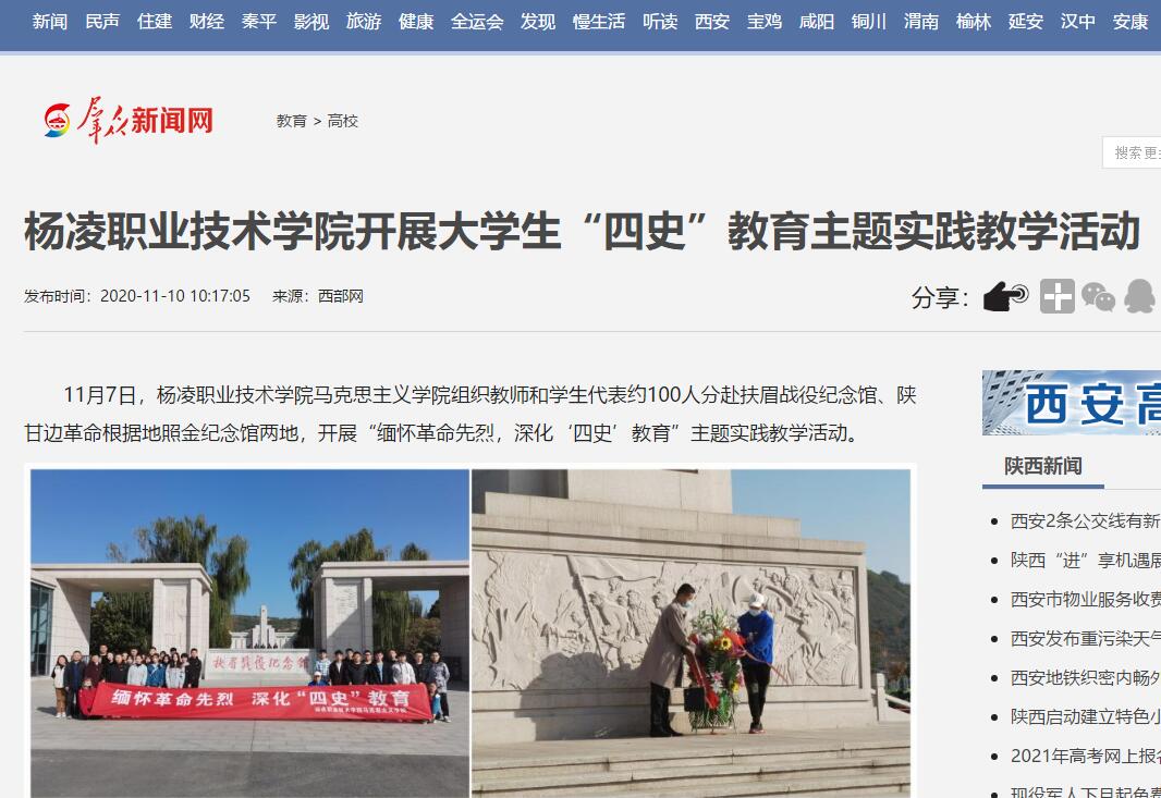 11月7日,杨凌职业技术学院马克思主义学院组织教师和学生代表约100人分赴扶眉战役纪念馆、陕甘边革命根据地照金纪念馆两地,开展“缅怀革命先烈,深化‘四史’教育”主题实践教学活动。