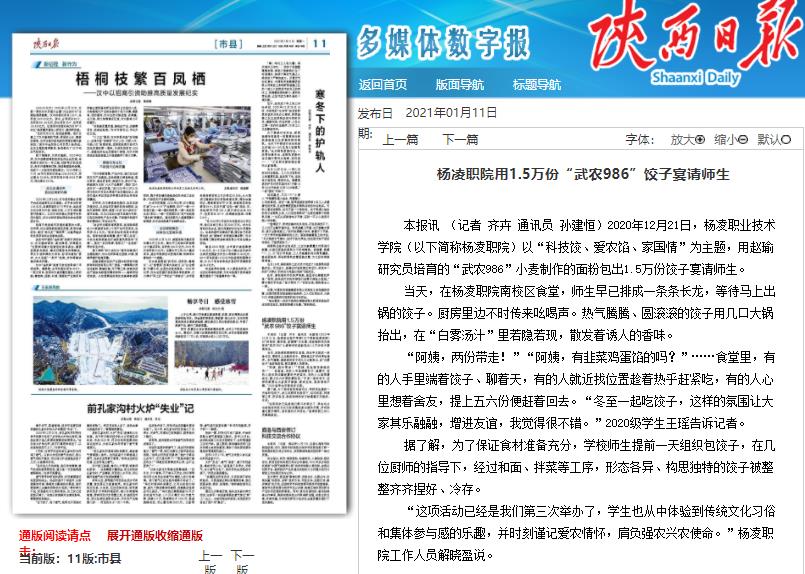 【陕西日报】杨凌职院用1.5万份“武农986”饺子宴请师生