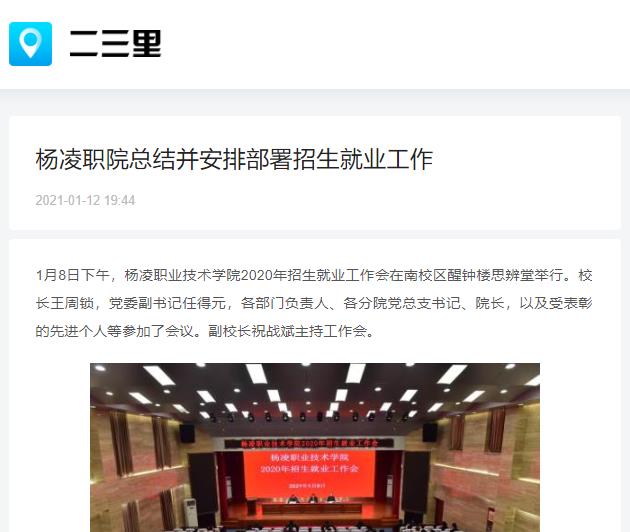 【二三里】杨凌职院总结并安排部署招生就业工作
