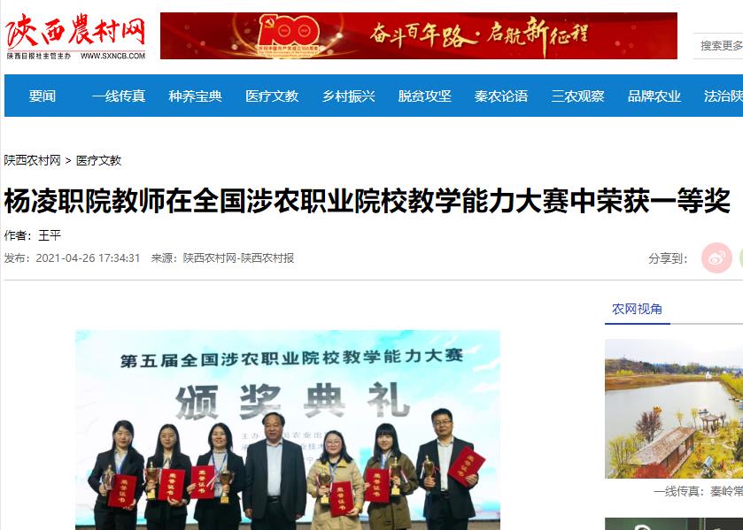 4月22日至24日,第五届全国涉农职业院校教学能力大赛在咸宁职业技术学院举行,经过激烈角逐,杨凌职业技术学院教师获大赛一等奖4项。