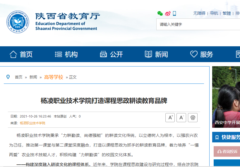 【陕西省教育厅】杨凌职业技术学院打造课程思政耕读教育品牌