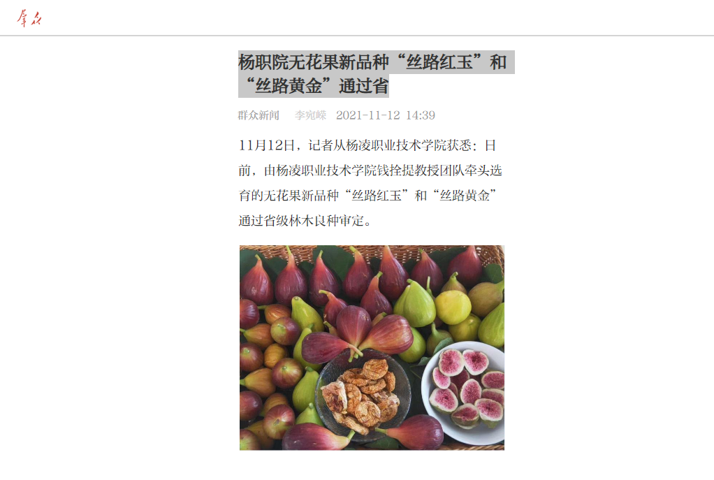 前不久,陕西省林业局发布了2020年度陕西省林木良种名录,经陕西省林木和草品种审定委员会审定,全省共有33个林木品种入选本年度省级林木良种。其中,无花果新品种“丝路红玉”和“丝路黄金”是由杨凌职业技术学院联合陕西丝路无花果科技研究院有限公司和杨凌菲格无花果产业发展有限公司,历经5年研究培育而成的。