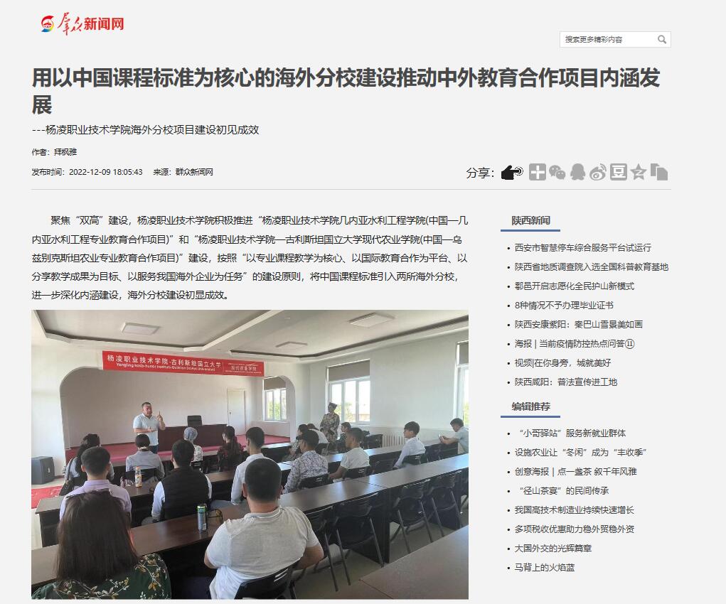 【群众新闻网】用以中国课程标准为核心的海外分校建设推动中外教育合作项目内涵发展——杨凌职业技术学院海外分校项目建设初见成效