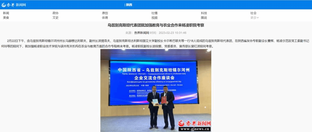 【各界新闻网】乌兹别克斯坦代表团就加强教育与农业合作来杨凌职院考察