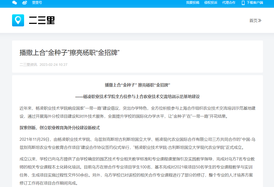 【二三里】播撒上合“金种子” 擦亮杨职“金招牌”——杨凌职业技术学院全方位参与上合农业技术交流培训示范基地建设
