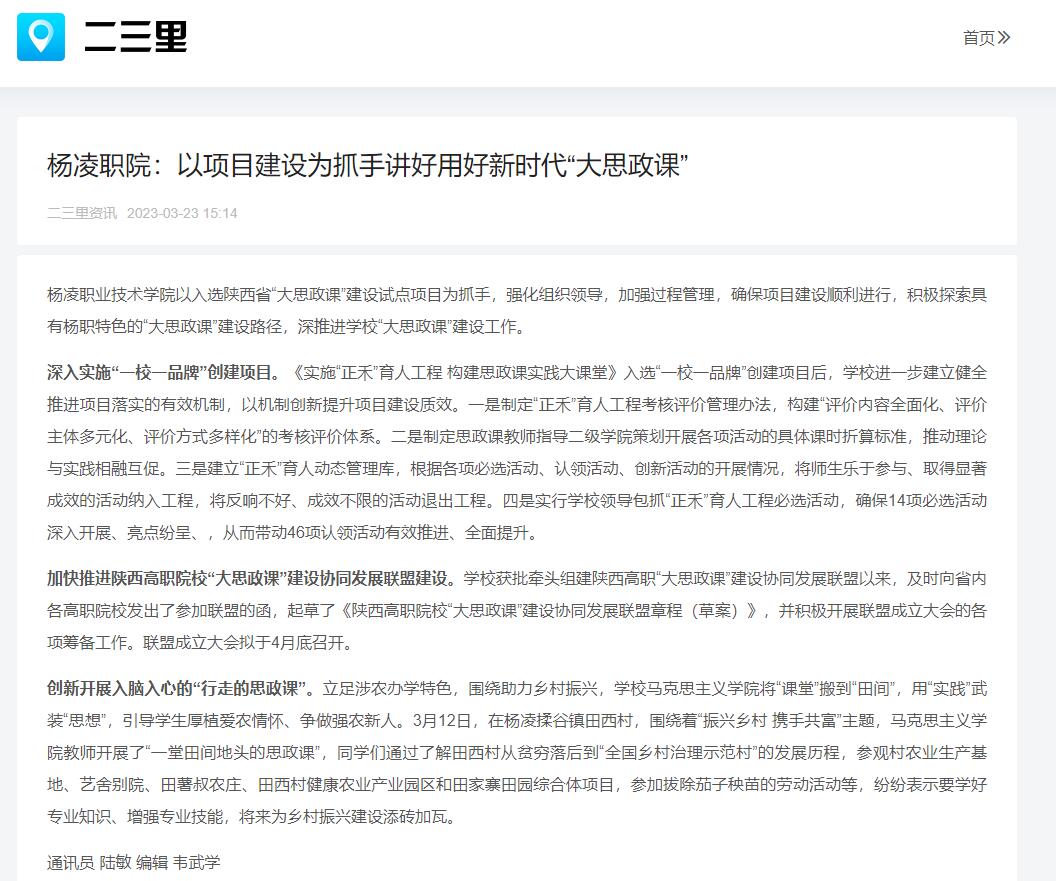 【二三里】杨凌职院:以项目建设为抓手讲好用好新时代“大思政课”