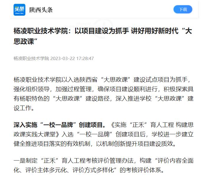 【陕西头条】杨凌职业技术学院:以项目建设为抓手 讲好用好新时代“大思政课”