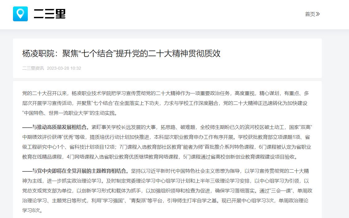 【二三里】杨凌职院:聚焦“七个结合”提升党的二十大精神贯彻质效
