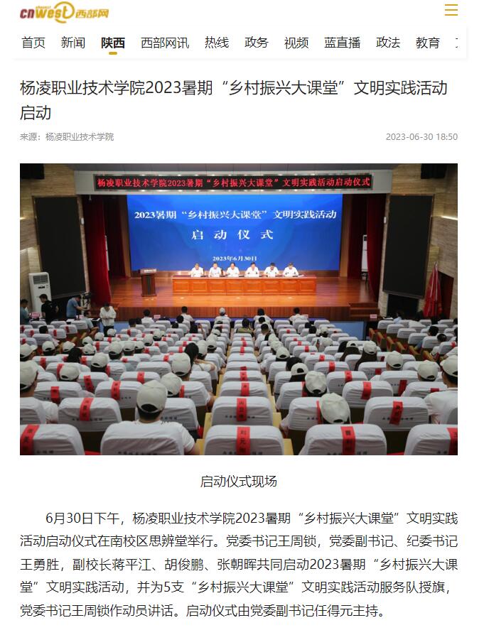 【西部网】杨凌职业技术学院2023暑期“乡村振兴大课堂”文明实践活动启动