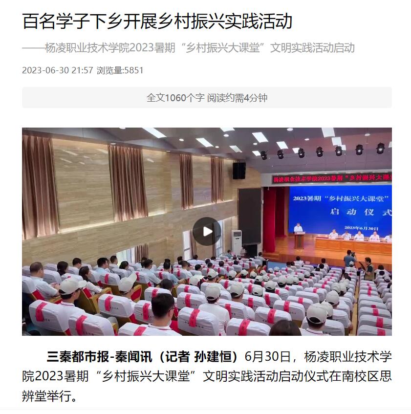 三秦都市报-秦闻讯(记者 孙建恒)6月30日,杨凌职业技术学院2023暑期“乡村振兴大课堂”文明实践活动启动仪式在南校区思辨堂举行。