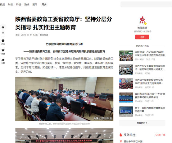省属高职院校突出专业优势,在把握规律中彰显教育特色。杨凌职业技术学院将主题教育与现代农业发展、助力乡村振兴等工作有机衔接,开展新品种小麦长势实践调研、乡村振兴“五联一抓”工作调研等活动,组建15个工作队包村发展,积极打造新时代职业教育助力乡村振兴示范样板。