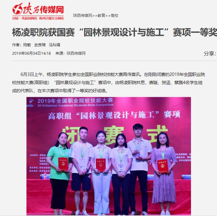 【陕西传媒网】杨凌职院获国赛“园林景观设计与施工”赛项一等奖