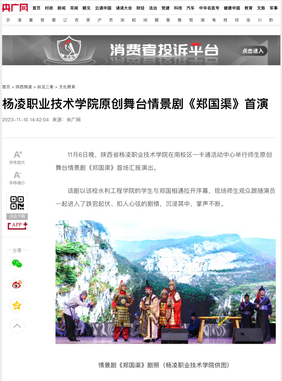 【央广网】杨凌职业技术学院原创舞台情景剧《郑国渠》首演