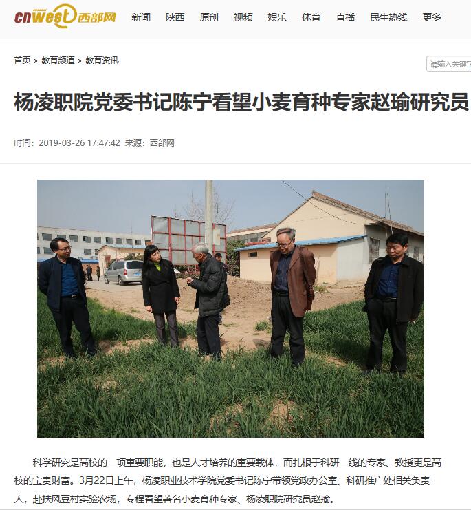 科学研究是高校的一项重要职能,也是人才培养的重要载体,而扎根于科研一线的专家、教授更是高校的宝贵财富。3月22日上午,杨凌职业技术学院党委书记陈宁带领党政办公室、科研推广处相关负责人,赴扶风豆村实验农场,专程看望著名小麦育种专家、杨凌职院研究员赵瑜。