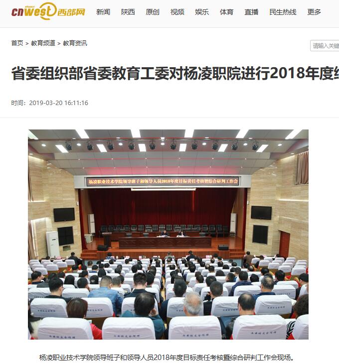 3月20日,杨凌职业技术学院领导班子和领导人员2018年度目标责任考核暨综合研判工作会在思辩堂召开。省属高校领导班子和领导干部目标责任考核暨综合研判第五工作组组长、省委教育工委委员、省纪委驻教育厅纪检组组长刘振涛一行6人到该院开展考核研判工作。