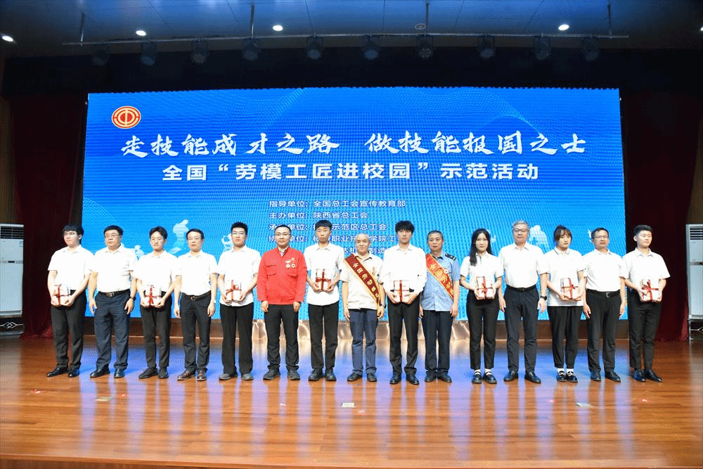 为持续推动全社会关心关注劳模工匠,掀起崇尚技能成才热潮,更好地引导职业院校学生树立技能报国之志,坚定理想信念,6月17日,以“走技能成才之路、做技能报国之士”为主题的2024年全国“劳模工匠进校园”示范活动走进杨凌职业技术学院。陕西省总工会党组成员、副主席王永岗出席。杨凌示范区党工委委员、管委会副主任,示范区总工会主席刘仲山出席并致欢迎辞。