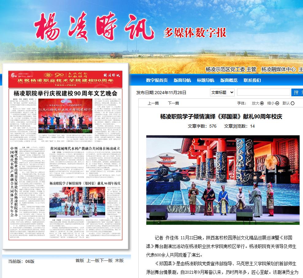 【杨凌时讯】杨凌职院学子倾情演绎《郑国渠》献礼90周年校庆