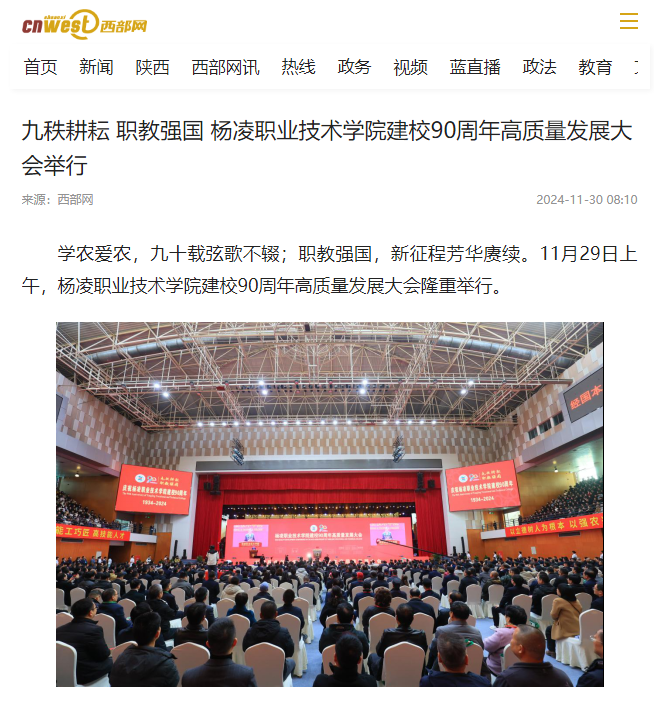 【西部网】九秩耕耘 职教强国 杨凌职业技术学院建校90周年高质量发展大会举行
