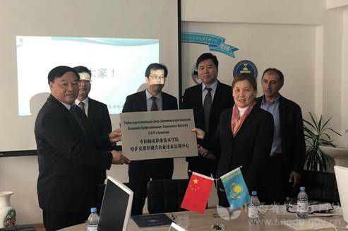 杨凌职院院长王周锁与哈萨克斯坦图尔根尼一体化农业公司总经理热克谢姆别科娃·满舒克共同为中心揭牌