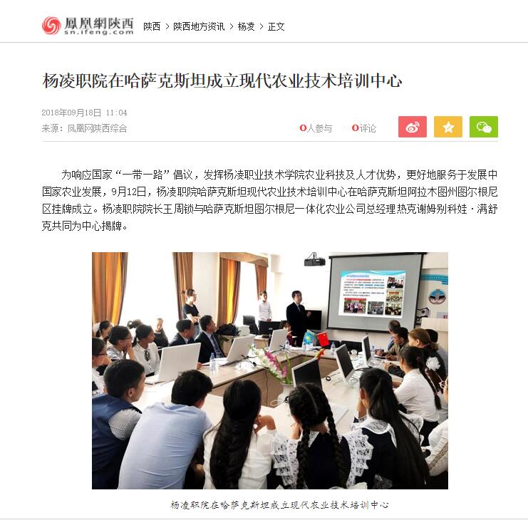 为响应国家“一带一路”倡议,发挥杨凌职业技术学院农业科技及人才优势,更好地服务于发展中国家农业发展,9月12日,杨凌职院哈萨克斯坦现代农业技术培训中心在哈萨克斯坦阿拉木图州图尔根尼区挂牌成立。杨凌职院院长王周锁与哈萨克斯坦图尔根尼一体化农业公司总经理热克谢姆别科娃·满舒克共同为中心揭牌。