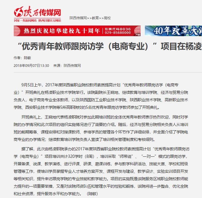 据了解,此次由杨凌职院承办的2017年度陕西省职业院校教师素质提高计划“优秀青年教师跟岗访学(电商专业)”项目培训共计320学时(8周),培训采取“师带徒”、“一对一”模式的跟岗访学,开展备课、说课、教学演练、进行评课、研课、磨课训练,参与教学科研活动、技能大赛、学校和班级管理等工作,使培训学员掌握专业人才培养方案开发、课程开发与建设、教学设计、实验实训项目开发等相关知识,提升来访跟岗学院的专业技能和教学能力。项目的实施既是该院服务区域职业院校教师能力提升的一项重要举措,又是对该院师资队伍和管理水平的检验和锻炼,该院将进一步整合、优化全院和社会资源,提升服务水平和办学能力。(陆敏)