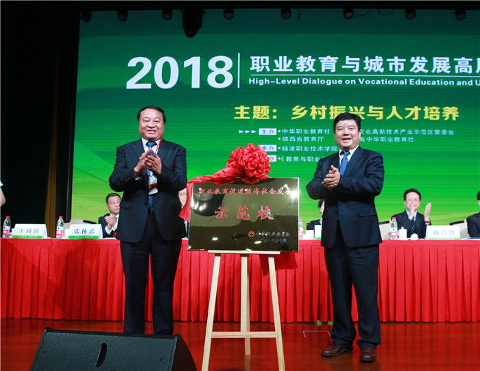 开幕式上,陈昌智向杨凌示范区管委会授予“职业教育促进经济社会发展示范区”牌子,李九红代表杨凌示范区管委会接牌;方乃纯向杨凌职业技术学院授予“职业教育促进经济社会发展示范校”牌子,王周锁代表杨凌职业技术学院接牌。