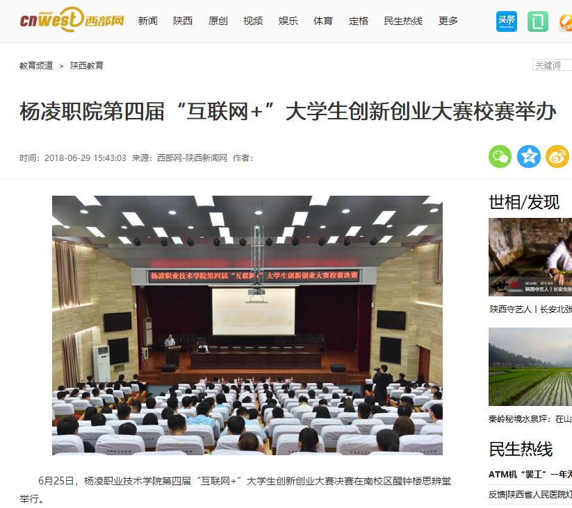 【西部网】杨凌职院第四届“互联网+”大学生创新创业大赛校赛举办