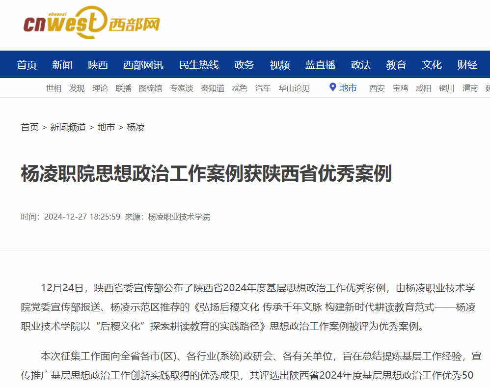 【西部网】杨凌职院思想政治工作案例获陕西省优秀案例