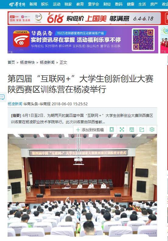 6月1日至2日,为期两天的第四届中国“互联网+”大学生创新创业大赛陕西赛区训练营在杨凌职业技术学院举行。此次训练营由陕西省教育厅主办,杨凌职业技术学院承办,旨在贯彻落实《教育部关于举办第四届中国“互联网+”大学生创新创业大赛的通知》精神,全面推进第四届陕西省大赛组织工作,提高参赛项目质量。