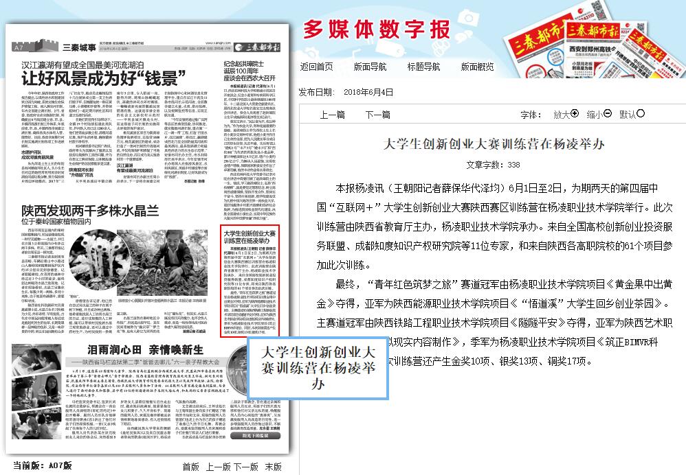 本报杨凌讯(王朝阳记者薛保华代泽均)6月1日至2日,为期两天的第四届中国“互联网+”大学生创新创业大赛陕西赛区训练营在杨凌职业技术学院举行。此次训练营由陕西省教育厅主办,杨凌职业技术学院承办。来自全国高校创新创业投资服务联盟、成都知度知识产权研究院等11位专家,和来自陕西各高职院校的61个项目参加此次训练。 最终,“青年红色筑梦之旅”赛道冠军由杨凌职业技术学院项目《黄金果中出黄金》夺得,亚军为陕西能源职业技术学院项目《“悟道溪”大学生回乡创业茶园》。主赛道冠军由陕西铁路工程职业技术学院项目《隧隧平安》夺得,亚军为陕西艺术职业学院项目《虚拟现实内容制作》,季军为杨凌职业技术学院项目《筑正BIMVR科技》。同时,本次训练营还产生金奖10项、银奖13项、铜奖17项。