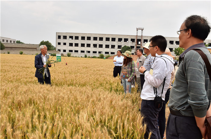 在豆村农场,赵瑜站在武农系列小麦品种扩繁田里,手持“武农981”和“武农988”两个新品种,向农业农村部农业厅领导及相关专家一行现场,介绍了最新育成的大穗大粒优质高产特殊类型小麦品种的研究过程,以及该品种在全国黄淮麦区进行区域生产试验的详细情况。大家就这两个品种的品质、播种时间、麦穗高度、粒数、研究对照等情况与赵瑜进行了交流。