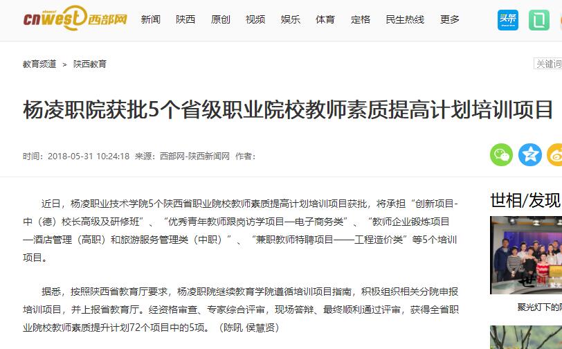 【西部网】杨凌职院获批5个省级职业院校教师素质提高计划培训项目