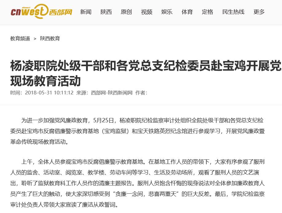 【西部网】杨凌职院处级干部和各党总支纪检委员赴宝鸡开展党风廉政暨革命传统现场教育活动