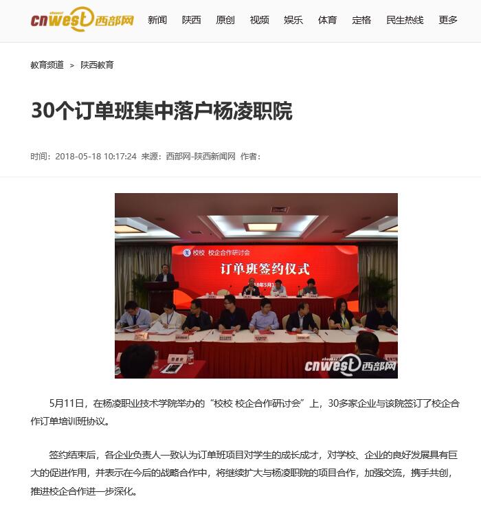 此次订单班协议的签订,使杨凌职院人才培养规格再上新台阶,提高了人才培养的针对性和实用性,达到学校、企业、学生三方共赢。