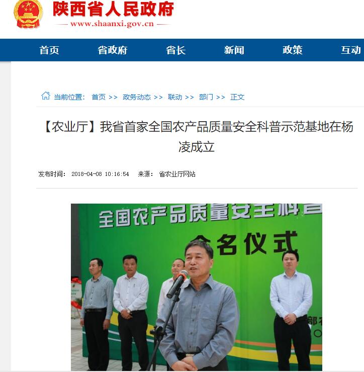 4月3日,我省“全国农产品质量安全科普示范基地”命名仪式在杨凌举办,杨凌职业技术学院成为我省首家国家级农产品质量安全科普示范基地。农业农村部农产品质量安全中心副主任寇建平宣读命名文件并讲话,他充分肯定了陕西农产品质量安全工作取得的成效,对科普示范基地建设提出了明确要求。省农业厅总经济师兼农监局局长李育江参加了命名仪式。
