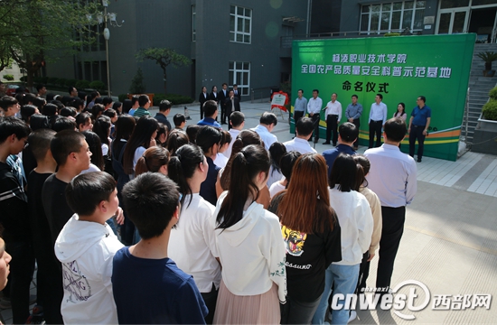 4月3日,全国农产品质量安全科普示范基地命名仪式在杨凌职业技术学院西校区举行。农业农村部农产品质量安全中心副主任寇建平出席仪式并宣读了《关于同意将杨凌职业技术学院确认为全国农产品质量安全科普示范基地的复函》。陕西省农业厅总经济师、农监局局长李育江,杨凌职院党委书记赵曼出席仪式并讲话。