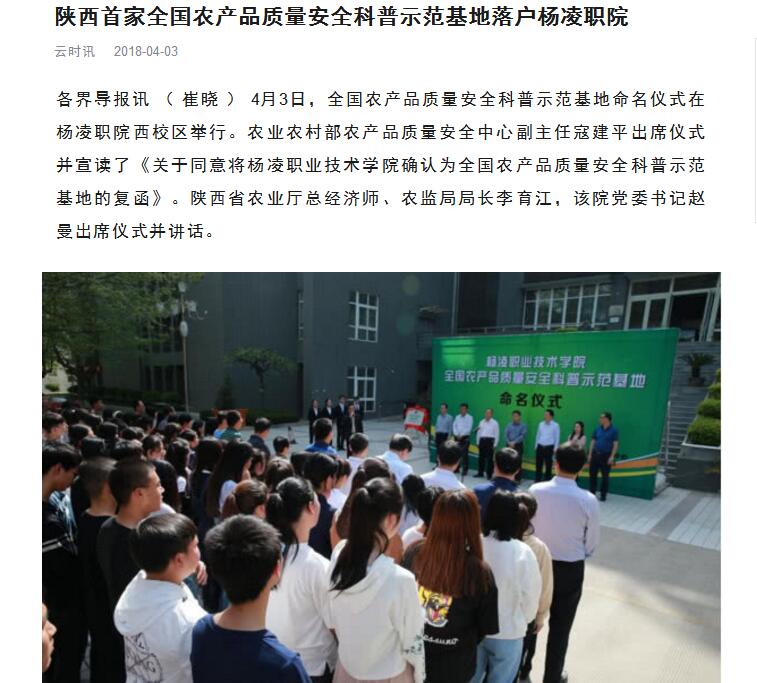 据了解,农业农村部产品质量安全中心在杨凌职院建立全国农产品质量安全科普示范基地,是为了建立常态化的农产品质量安全科普宣传、生产指导和消费引导机制,充分发挥科研院所和大专院校及公共媒体在生产和消费检测评估体验等方面的优势。基地建立后,将承担常态化的农产品质量安全科学研究、科普宣传、科学解读、答疑解惑、技术培训、生产指导、消费引导、生产消费检测评估体验、展览展示等方面的工作。