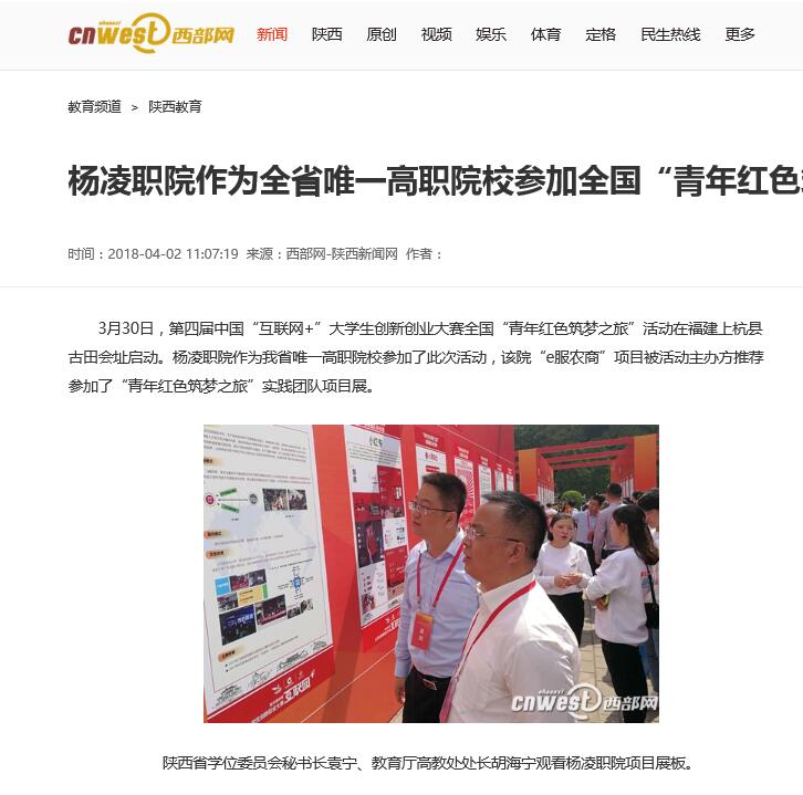 3月30日,第四届中国“互联网+”大学生创新创业大赛全国“青年红色筑梦之旅”活动在福建上杭县古田会址启动。杨凌职院作为我省唯一高职院校参加了此次活动,该院“e服农商”项目被活动主办方推荐参加了“青年红色筑梦之旅”实践团队项目展。