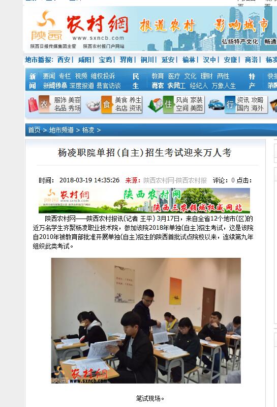 陕西农村网——陕西农村报讯(记者 王平) 3月17日,来自全省12个地市(区)的近万名学生齐聚杨凌职业技术院,参加该院2018年单独(自主)招生考试,这是该院自2010年被教育部批准开展单独(自主)招生的陕西首批试点院校以来,连续第九年组织此类考试。