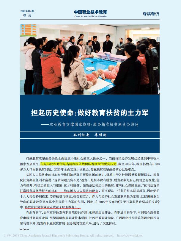 【中国职业技术教育】担起历史使命:做好教育扶贫的主力军