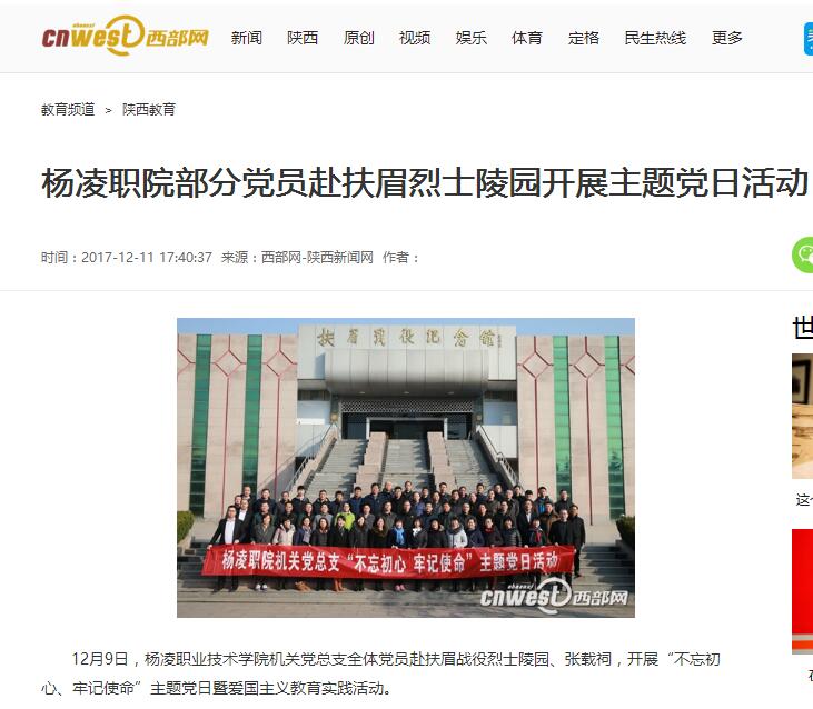 12月9日,杨凌职业技术学院机关党总支全体党员赴扶眉战役烈士陵园、张载祠,开展“不忘初心、牢记使命”主题党日暨爱国主义教育实践活动。